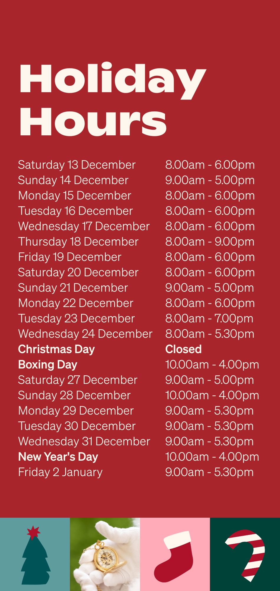 This festive season, we’re giving you the gift of time. With extended trading hours at Eastgate Bondi Junction, you can shop at your own pace.